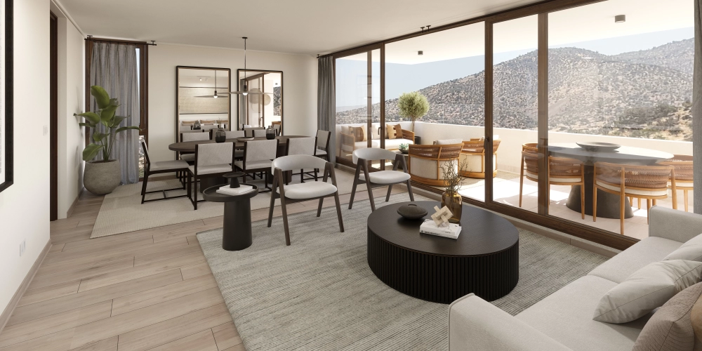 Ven a conocer nuestros departamentos en un entorno único, con una privilegiada vista hacia el valle La Dehesa, cercano a los mejores colegios.